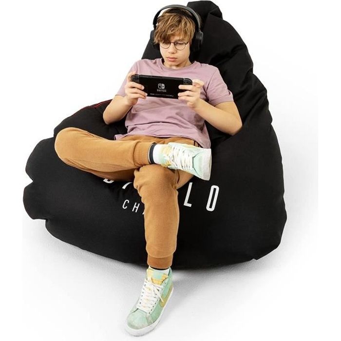Diablo Pouf Poire Gaming XXL Beanbag Pouf avec Remplissage pour Adultes avec des Perles EPS Polyester 110 cm x 100 cm (Noir)