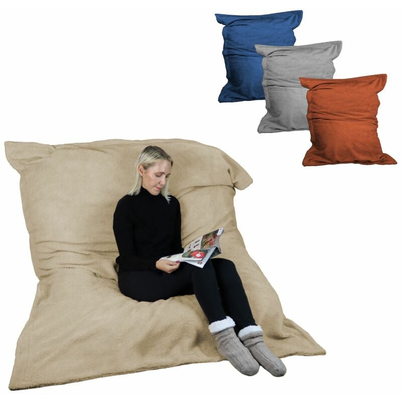 Pouf géant XXL, fauteuil d'intérieur déhoussable - 150 x 180 cm - Sherpa - Beige - Vivezen