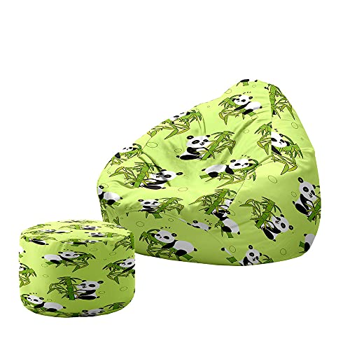Treer Housse de Pouf Poire Pouf Adulte et Enfants Sac de Haricots + Housses de Repose-Pieds (sans Remplissage) pour Intérieur et Extérieur (100x120+20x30cm,Panda 10)