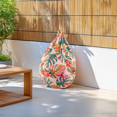Pouf poire en toile imprimé tropical H.110 x P.75 cm