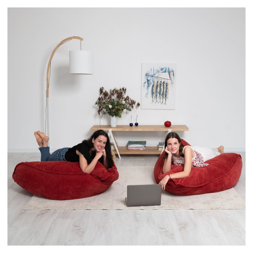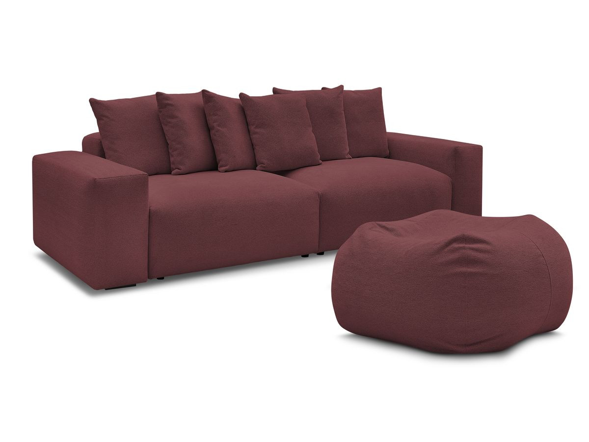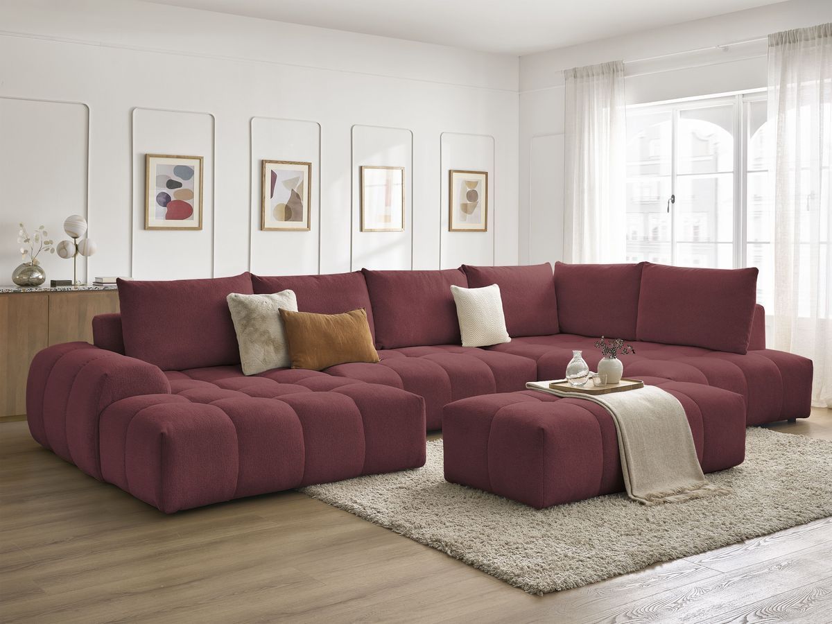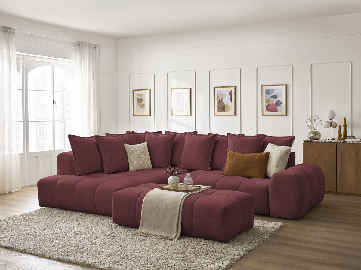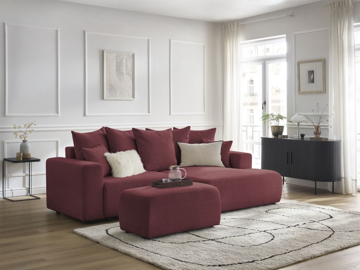 Bobochic canapé d'angle l convertible coffre everest tissu chiné avec pouf rouge angle droit EVEREST