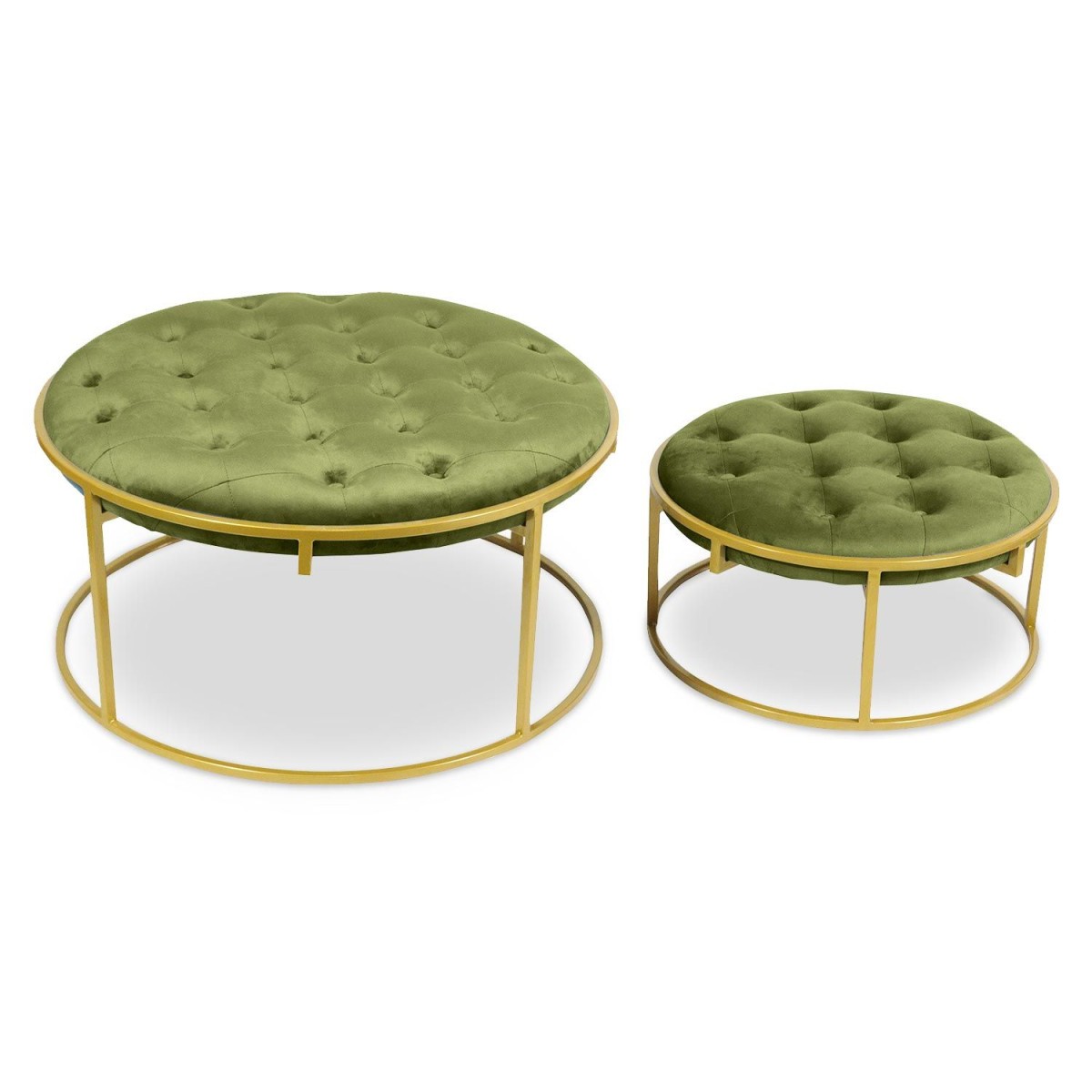 Lot de 2 Poufs Design en Velours "Valona" 75cm Kaki