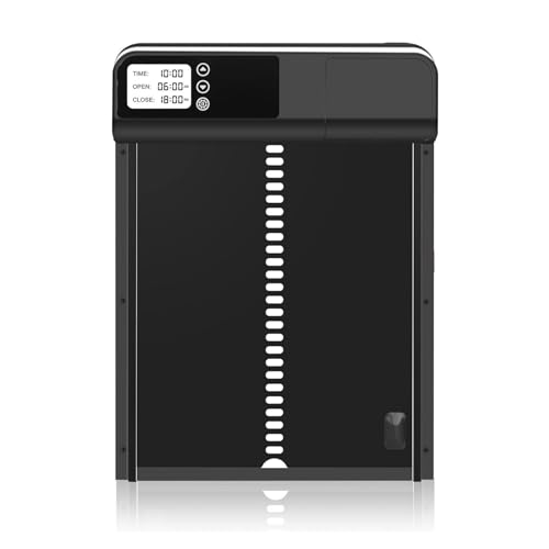 CHAMUTY Porte Poulailler Automatique Batterie avec Écran LCD Programmable Étanche, Porte Automatique Poulailler en Aluminium avec Minuterie, Fonction Anti-pincement, Ouvre-Porte Vertical, Noir