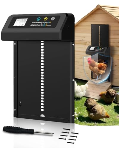 CISSIYOG Poulailler automatique en aluminium avec écran LCD, minuteur, capteur de lumière, télécommande, design anti-pincement, idéal pour tous les poulaillers