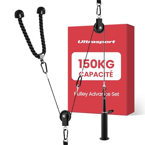 Ultrasport Cable Poulie Musculation | Appareil de Traction Latérale et Triceps pour la Maison | Fitness Station de Musculation à Poulie, Tour à Câbles, Tirage Latéral