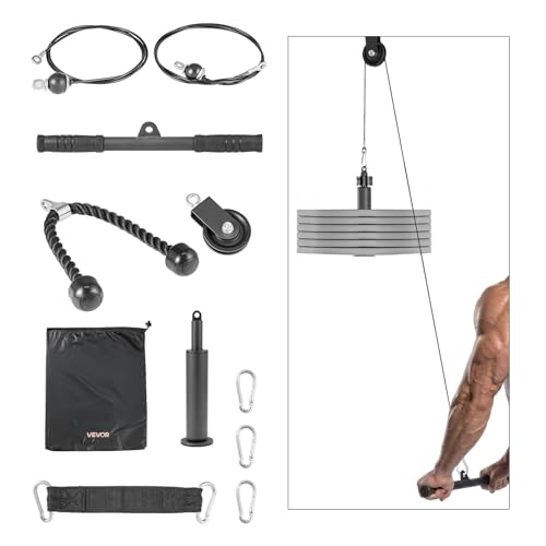 VEVOR Poulie Musculation 2PCs, Système de Poulie pour Fitness Capacité 150 kg, pour Tirage Vertical Extensions de Triceps Biceps Dos et Épaules, avec 2 Câbles en Acier, Barre Courte et Poignée à Corde