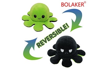 Poulpe en peluche réversible 20cm, Noir + vert