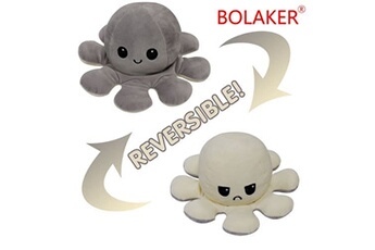 Poulpe en peluche réversible 20cm, Beige + gris