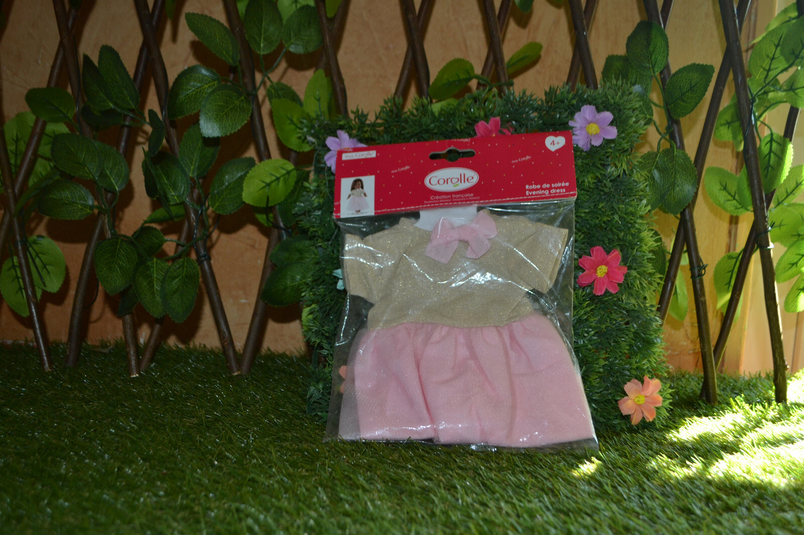 corolle robe de soiree or rose petit noeud poupee de 36 cm neuve