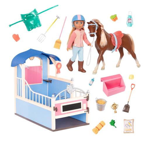 Glitter Girls – Poupée de 36 cm et Coffret de Jeu – Ensemble équestre – Cheveux blonds et Yeux Bleus, crinière Blonde – Poupée, Cheval, écurie – 3 Ans et Plus – Milla & Milkyway, écurie