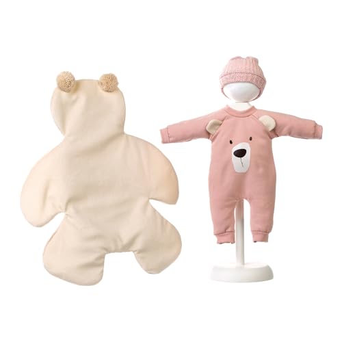 Llorens 1096364 Accessoires pour poupée de 36 cm, Ensemble de vêtements avec Couverture d'ours Blanche, grenouillère Rose et Bonnet pour poupées de bébé, vêtements de poupée, Couverture de poupée