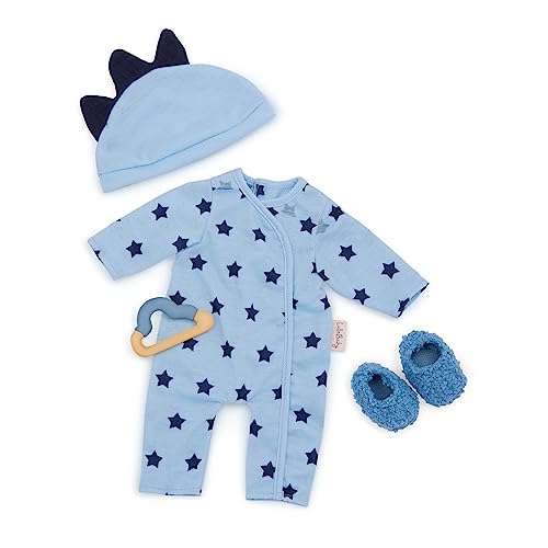 LullaBaby - Ensemble de vêtements pour poupée de 36 cm - Ensemble pyjama Onesie - Chapeau avec pointes 3D, sucette, chaussons pelucheux - Jeu imaginatif - 2 ans et +
