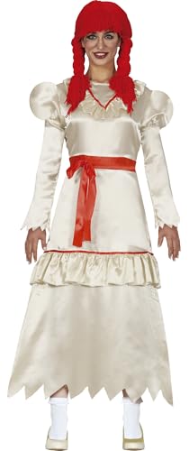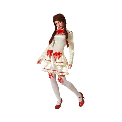 FIESTAS GUIRCA | Costume Poupée Maudite Adulte (42-44/L) - Robe - Costumes d'Horreur et de Terreur pour Halloween, Carnaval et Fêtes Costumées - Idéal pour Femmes - Beige