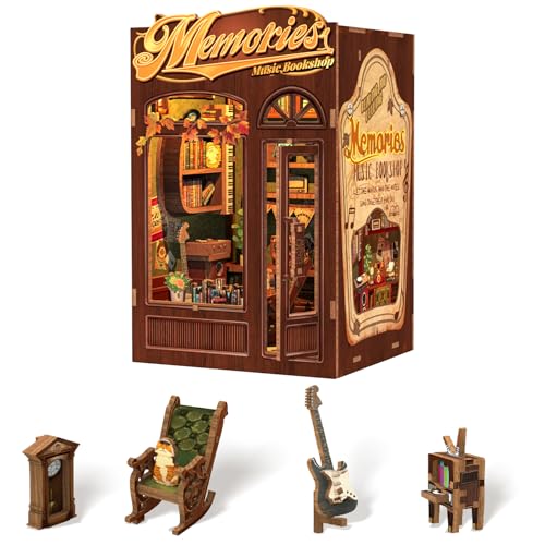CUTEBEE Book Nook Kit, DIY Maison de Poupée Miniature à Construire Adulte (Memories Music Bookshop) avec Lumières LED, Puzzle 3D en Bois, Cadeau pour Adultes/Amateurs de Bricolage