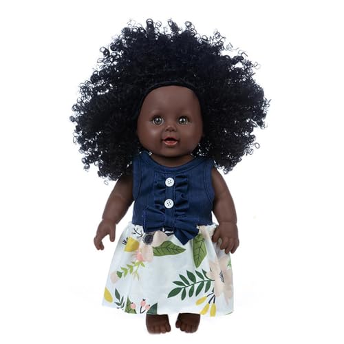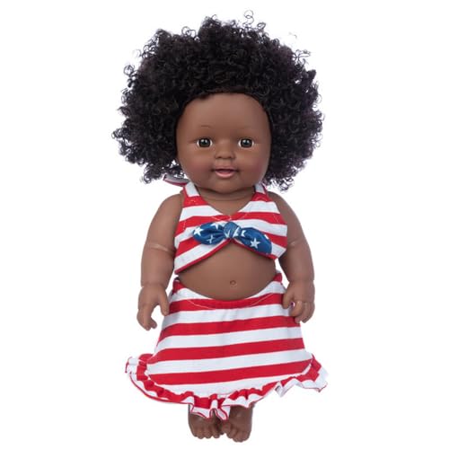 Uteruik Poupée Noire de 35 cm (14 Pouces), poupée bébé Afro-américaine avec Robe colorée et Bandeau.