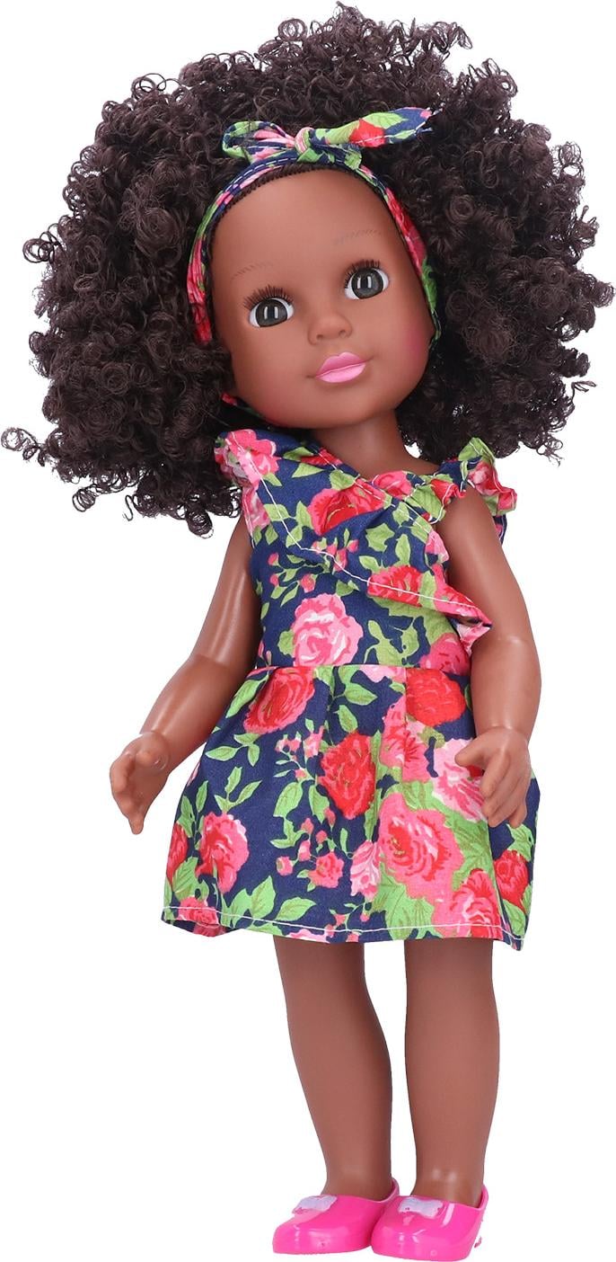 Poupée afro-américaine noire de 14 pouces aux cheveux bouclés- corps entier - cadeau idéal pour les filles de 3 ans et plus01