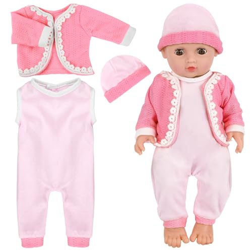 Vêtements de Poupée pour New Born Baby Poupée, Vêtement de Poupée, Tenue Vêtement pour Poupée Vetement Poupee, Tenue de Poupée Accessoires avec Chapeau Barboteuse Manteau pour Poupée 35-45 cm