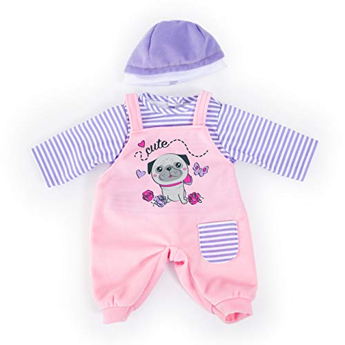 Bayer Design 84683AA Vêtements pour poupée de 40-46cm, Accessoires pour poupées, Salopette, Haut et Casquette, Ensemble, Tenue avec Un Joli Motif de Chien