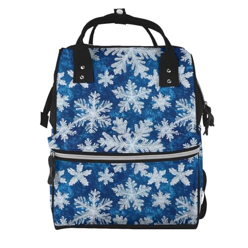 Nevjipu Sac à dos à langer pour poupée – Sac à dos fantaisie bleu avec imprimé flocons de neige pour maman, sac à dos tactique pour bébé, sac à dos de voyage, randonnée, sac à langer pour bébé, sac à
