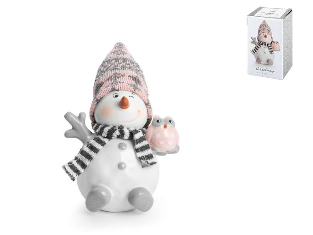 Poupée De Neige En Céramique Couleur Grise Et Rose Hauteur CM H&H