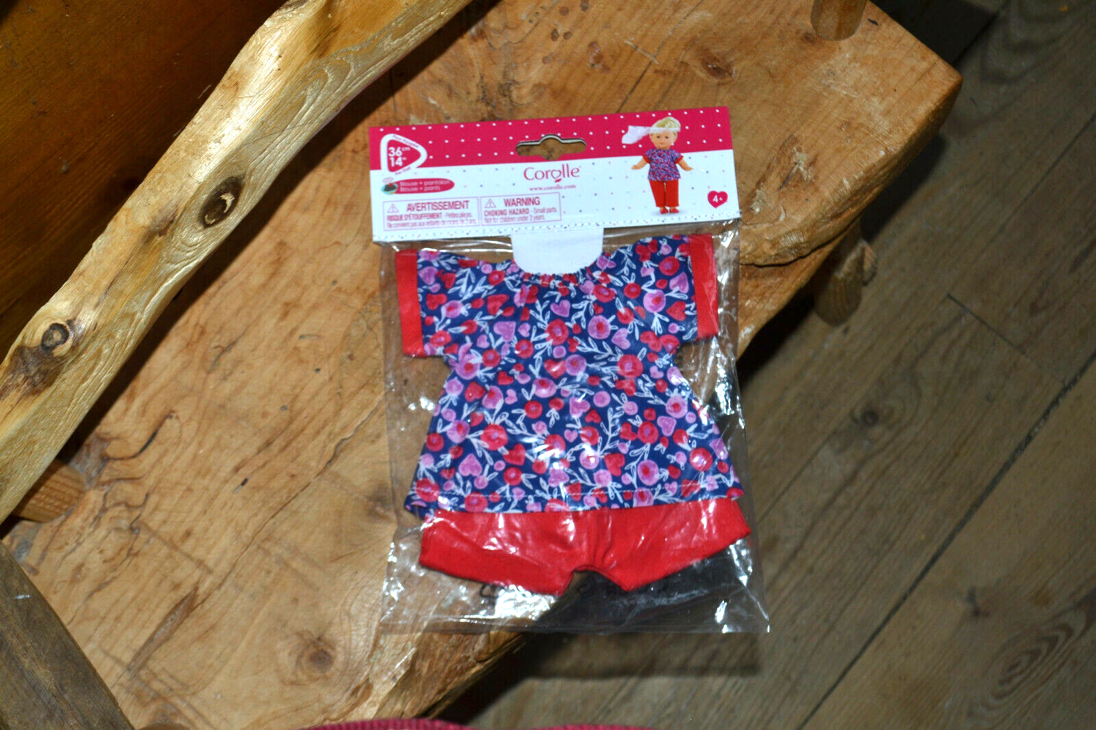 corolle neuf blouse et pantalon rouge marine superbe poupee 36 cm xxxx