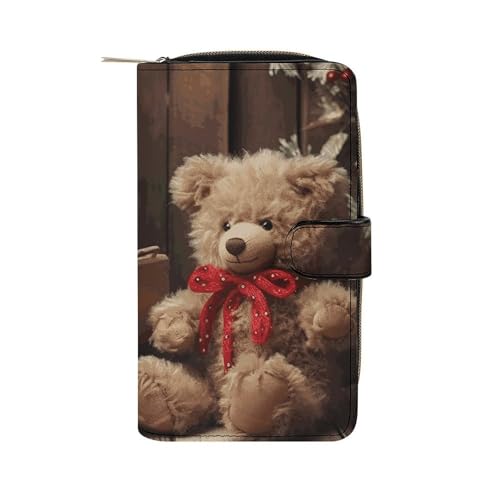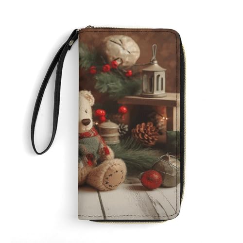 LFDSYEOQ Portefeuille fin en cuir grain de bois pour homme et femme, disponible en plusieurs styles, Poupée ours branche d'arbre de Noël, 19.7x10.5cm, Décontracté