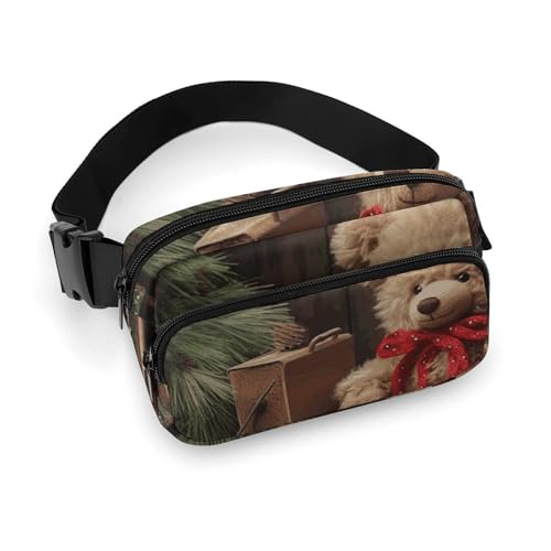 Sac banane pour homme et femme avec sangle réglable Orange Rouge Phoenix Sac banane pour tous les jours, Poupée ours branche d'arbre de Noël, 20x13cm