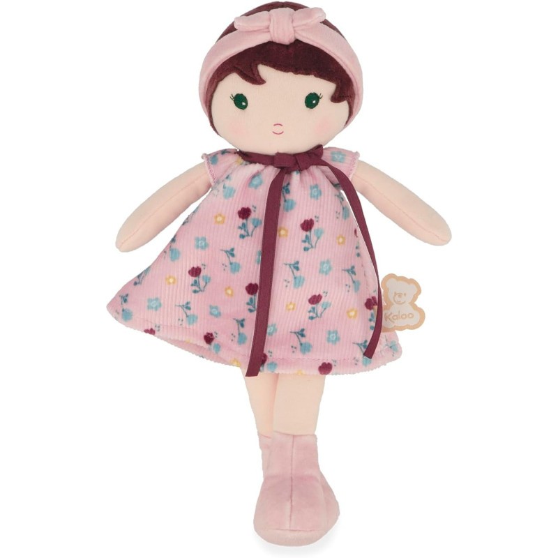 KALOO - Tendresse - Ma 1ère Poupée en Tissu Eloïse - Poupée de Chiffon 25 cm - Robe en Velours Côtelé et Mousseline - Jolie Boite Cadeau - Ruban Personnalisable - Dès la Naissance, K200019