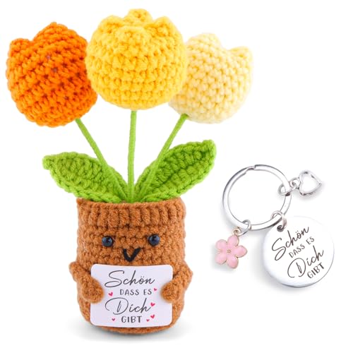 wokdsbl Cadeaux de remerciement pour femmes et hommes - Poupée tulipe tricotée à la main avec boîte cadeau - Belle qu'elle vous donne une décoration florale, petite idée de cadeau pour petite amie