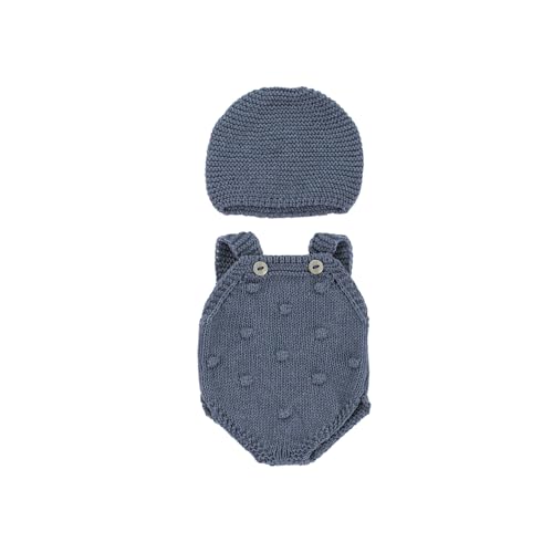 Miniland - Ensemble de vêtements en Tricot recyclé pour poupée de 32 cm Miniland Dolls - Barboteuse et Bonnet Bleu
