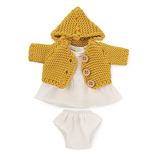 Miniland - Ensemble de vêtements en Tricot recyclé pour poupée de 32 cm Miniland Dolls - Robe et Bande, Beige, 31653