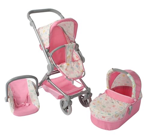 Bayer Chic 2000 Poussette de poupée Fides, Ensemble 3 en 1 composé d'une nacelle, d'un siège Sport et d'un siège Auto, de Papillons, Rose