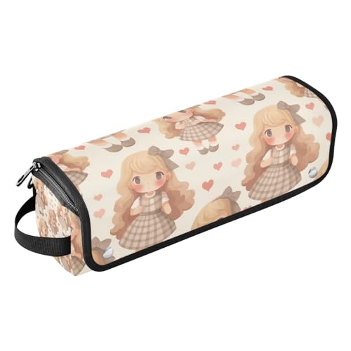 WDdZzyy Adorable poupée de princesse 2 en 1 à cheveux bruns et tapis résistant à la chaleur avec fermeture éclair, outils chauffants, sac de voyage pour fers plats, lisseurs, fers à friser, dessin