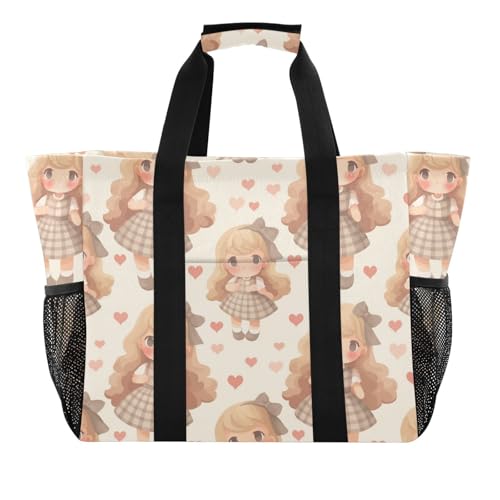 Sac de plage pliable en toile avec compartiments Motif princesse, Poupée de princesse aux cheveux bruns mignon, 1 size, Tendance
