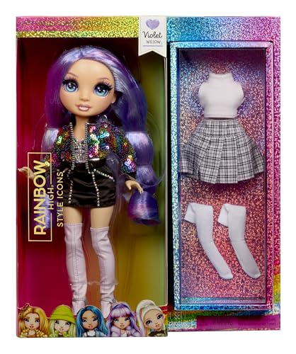 RAINBOW HIGH Style Icons Violet - Poupée de 28 cm avec de Longs Cheveux Brossables, Dotée d’Une Deuxième Tenue Assortie et d’Une Deuxième Paire de Chaussures, Articulée, avec 13 Points d'Articulation