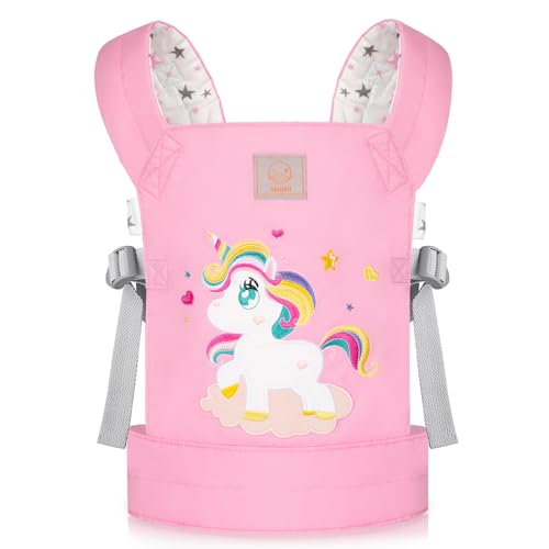 GAGAKU Porte-poupée pour Enfants - Porte-poupée Reborn avec Sangles réglables pour Accessoires de poupée en Peluche - Rose - Qilin brodé