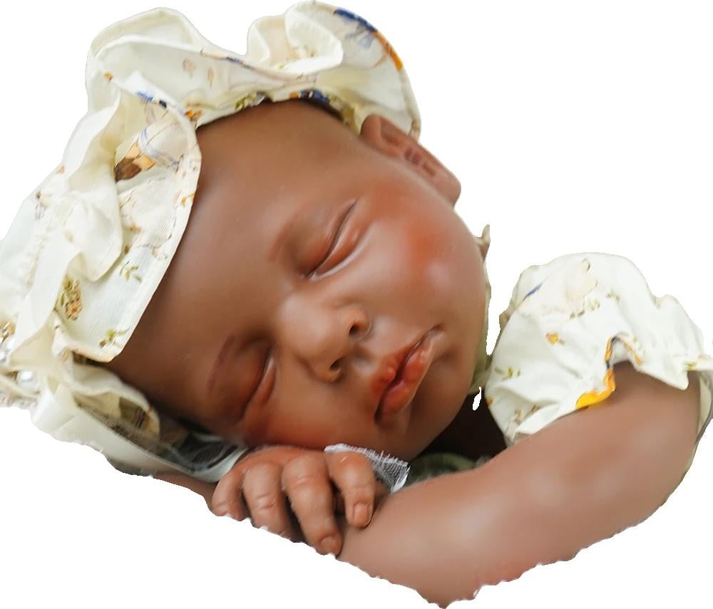 YIHANGG Afro-Américain Poupée Reborn Noir Réaliste 48cm Bébé Reborn Silicone Fille Yeux Fermés Nouveau-né Anniversaire Noël Cadeau