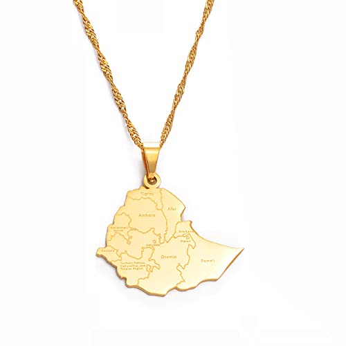 Collier Pendentif Carte De L'Éthiopie - Contour Du Pays Bijoux Hip-Hop De Style Ethnique, Nom Des Villes Breloque D'Impression Chaîne De Vague D'Eau, Cadeaux Patriotiques Pour Femmes/Filles/Hom