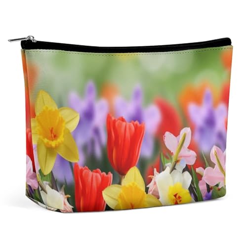 Trousse de maquillage de voyage, trousse de toilette portable à fleurs de printemps, grande capacité, pochette à fermeture éclair, trousse de maquillage, trousse de toilette étanche pour femmes et hom
