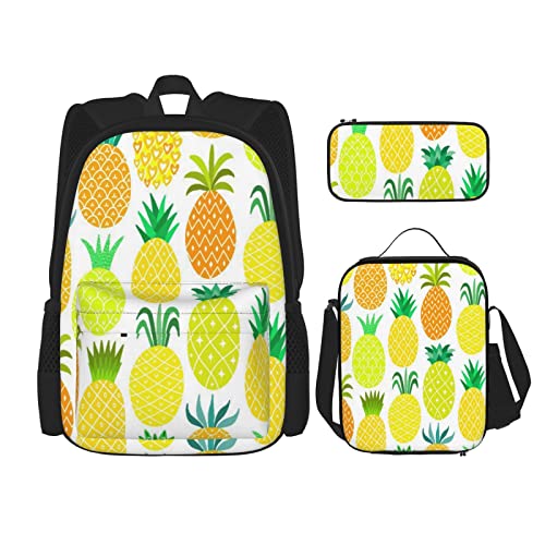 Ensemble de 3 sacs à dos Fruits hawaïens frais et sucrés dans des formes astucieuses Jardin biologique en saison estivale Cartable Voyage Travail Sac d'école Trousse Sac à lunch Combinaison pour hom