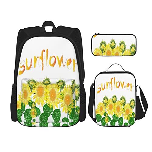 3 pièces ensemble sacs à dos jaune tournesol inspiré tournesols et bourgeons feuilles de plantes sac de livre voyage camping travail sac d'école trousse à crayons sac à déjeuner combinaison pour hom