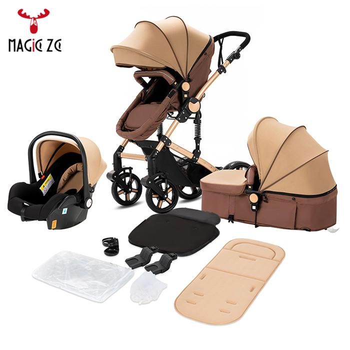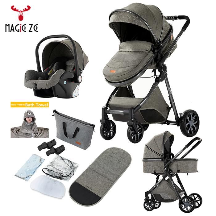 Poussette bebe pousette trio 3 en 1 poussetteavec siege autoDossier réglable0-3 anspliablegris clair