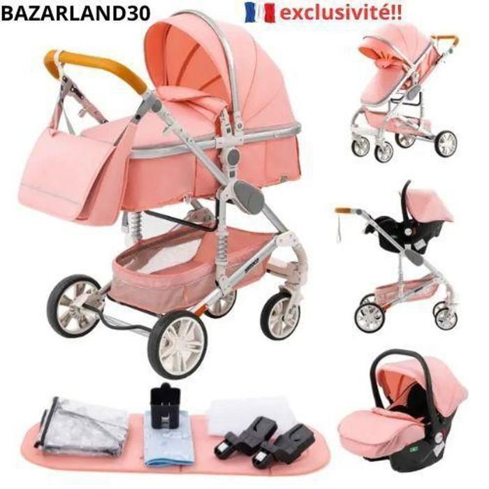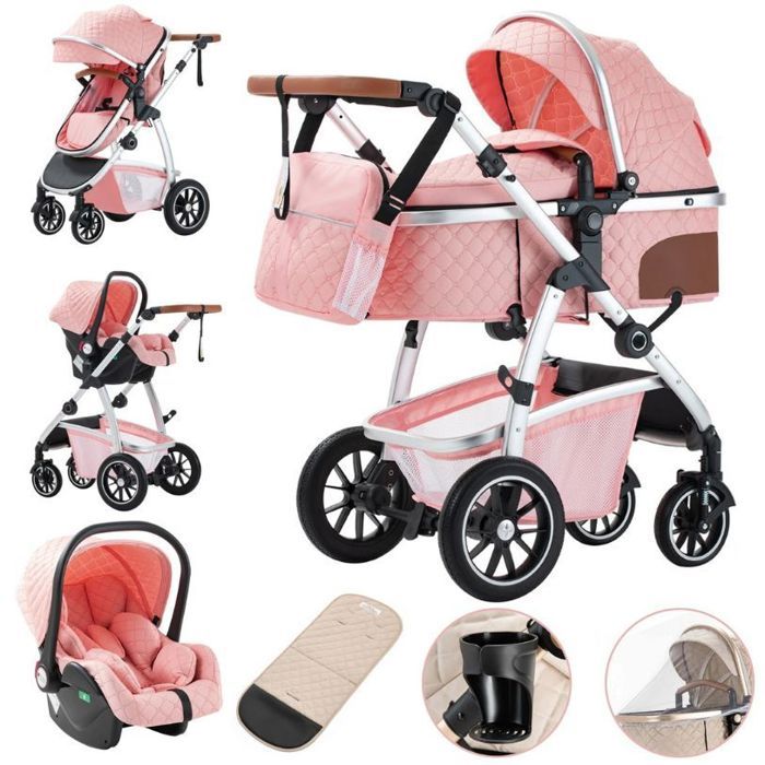 Poussette 3 en 1 rose