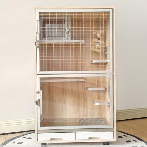 Cage pour Chinchilla en Bois pour Petits Animaux, Roue Universelle à 360°, Peut Accueillir 2 à 3 Petits Animaux(A-60 * 40 * 80cm)