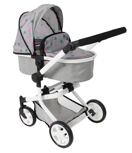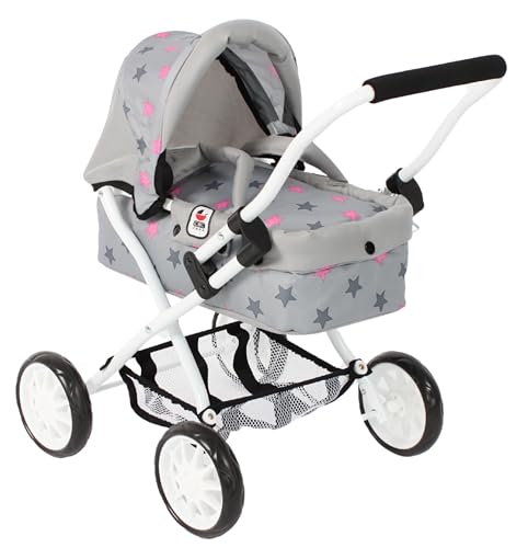 Bayer Chic 2000® Poussette de poupée 2en1 Mika - étoiles Grises - Pliable - poignée réglable en Hauteur 47-80 cm - Armature Moderne - poupées jusqu'à 52 cm - 4-8 Ans