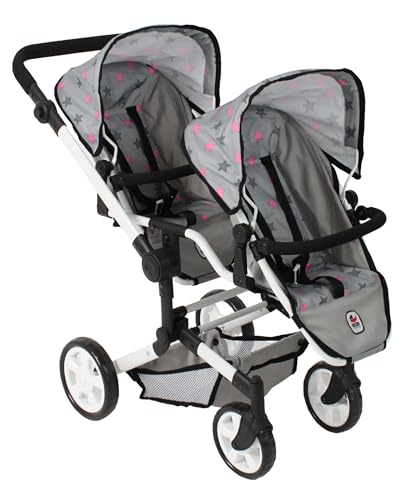 Bayer Chic 2000® Poussette de poupée Linus Duo - Étoiles Grises - Poussette Double Pliable - Poignée réglable 50-82 cm - Poupées jusqu'à 50 cm - 4-8 Ans