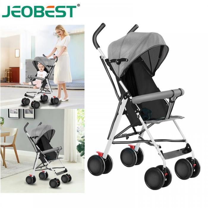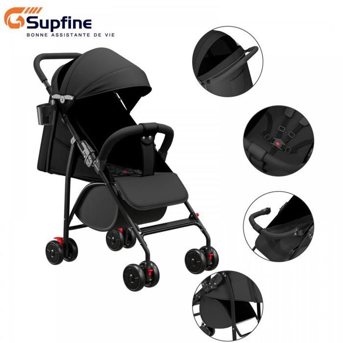 Poussette canne - XUANYU - Poussette multiple - Compacte - 4 EVA roues - Avec habillage pluie - Noir
