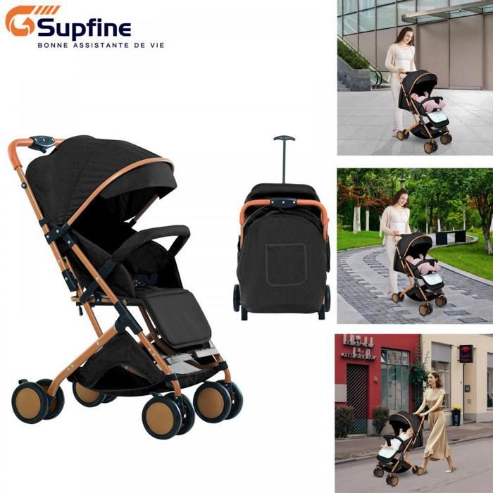 Poussette canne - XUANYU - Poussette multiple - Compacte - 4 EVA roues - Avec habillage pluie - Noir