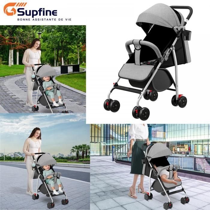 SUPFINE Poussette Canne Compacte pour Bébé avec Coussin en Coton Respirant Gris Pliable pour 0-5 Ans
