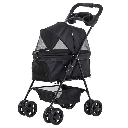 PawHut Poussette buggy pliable chien chat panier rangement porte-gobelets tissu 300D Oxford imperméable 4 roues noir
